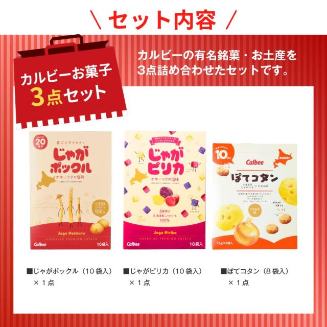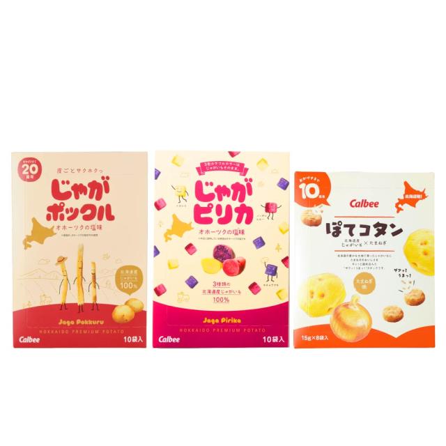 カルビー 3点セット(じゃがポックル・じゃがピリカ・ぽてコタン各1個) スナック Calbee お菓子 じゃがいも ポテト 馬鈴薯 たまねぎ オニオン 北海道限定 北海道土産 ギフト プチギフト お土産 個包装 小分け ばらまき 贈答 お取り寄せ