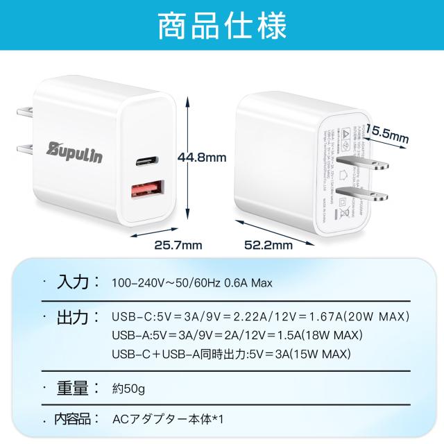 急速充電器 ACアダプター 最大20W USB充電器 5V 3A 急速充電 2ポート 充電器アダプター USB電源アダプター typeC iPhone Android Galaxy Xperia XS ゲーム機 PSE認証 20W出力 軽量 超小型