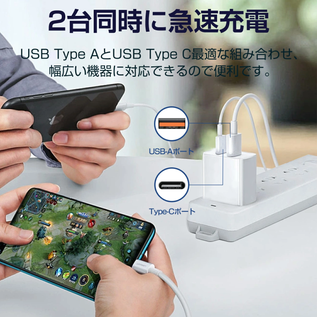 ご注意:2つのポートを同時に充電する時、PDとQC急速充電に対応しておりません。