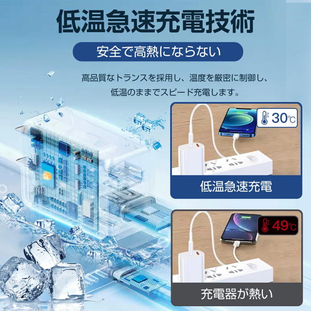 優れた技術を搭載しており、最先端の温度抑制システムで過度な温度上昇を防止します。優れた安全技術により、過充電、過電圧、過電流、過熱、回路のショートを防ぎ、長時間の安全な充電が可能です。
