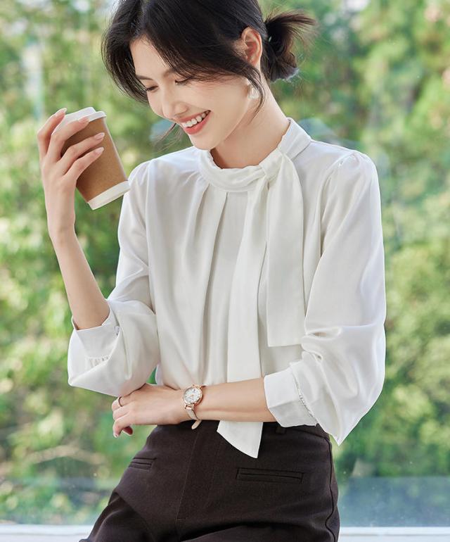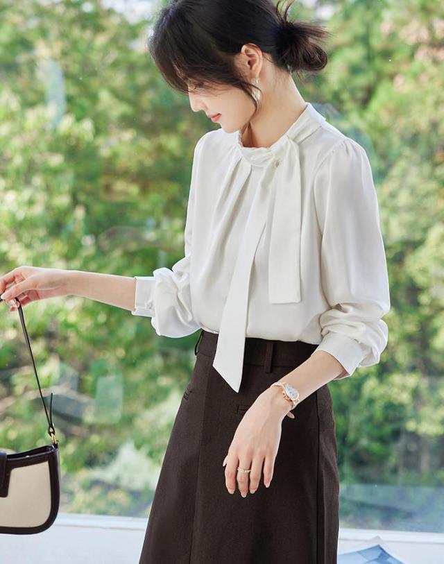 | 【大人の洗練された装いを叶える、サテンボウタイブラウス】 上品な光沢感と、とろけるような肌触りが魅力のサテン素材を使用。 顔周りを華やかに彩る立襟のボウタイデザインは、結び方次第でフェミニンにもマニッシュにも表情を変えられます。 Point 01: 上質なサテン生地 程よい厚みがあり、透けにくくシワになりにくい優秀素材。シルクのような艶が高級感を演出します。 Point 02: クラシカルな立襟デザイン 首元をスッキリと見せるハイネック仕様。ジャケットのインナーとしても映えるデザインです。 Point 03: ふんわり袖のディテール 袖口のギャザーが女性らしい柔らかなシルエットを作り出し、手元まで美しく見せます。 通勤などのデイリー使いはもちろん、結婚式や入学式、パーティーといったフォーマルなシーンでも大活躍間違いなしの一着です。 |