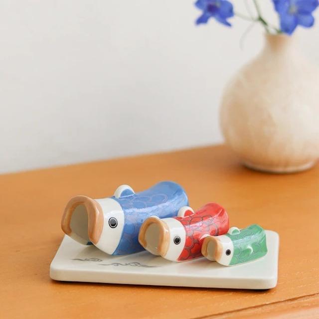 磁器ならではのやさしい風合いが魅力の、こいのぼりオブジェ。 |