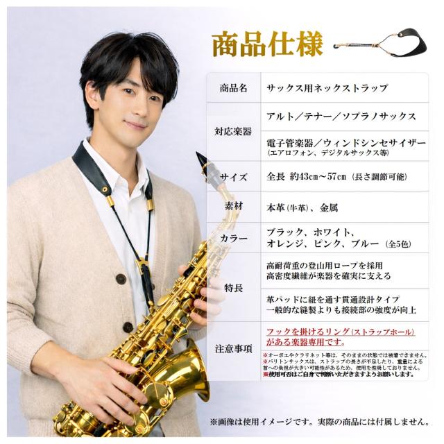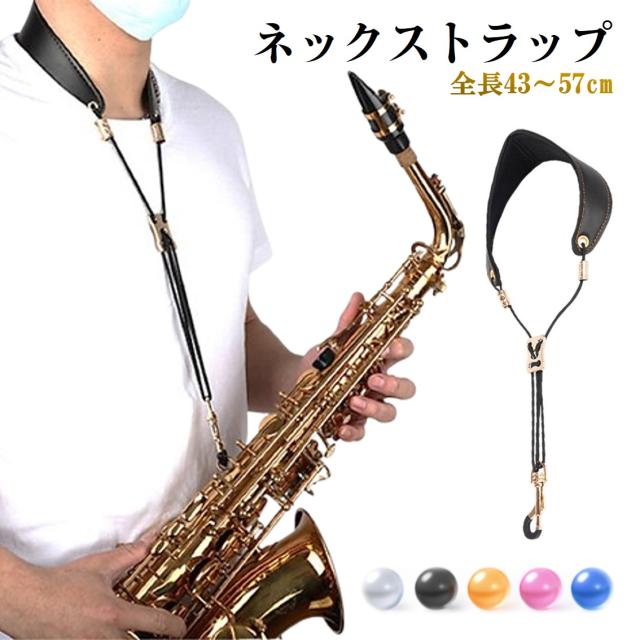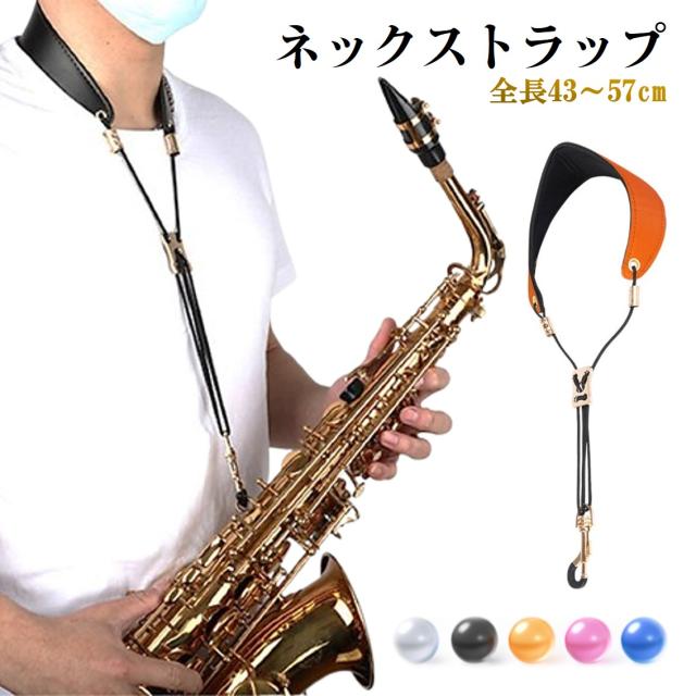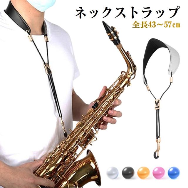 サックス ネックストラップ サックスストラップ 本革 ネックパッド付き 長さ調整可能 楽器 アルトサックス テナーサックス ソプラノサックス エアロフォン 対応