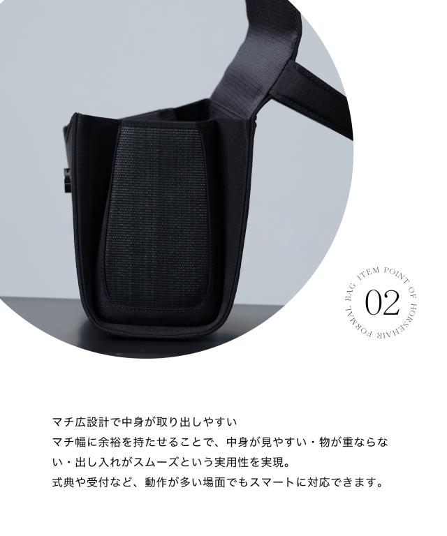 大切な場面にふさわしい、品格と実用性を兼ね備えたブラックフォーマルバッグです。