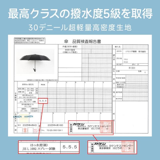 ◎超撥水加工(撥水度5級) 雨水を強力に弾き、軽く振るだけで水滴が落ちやすい。