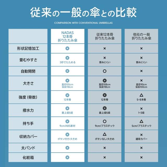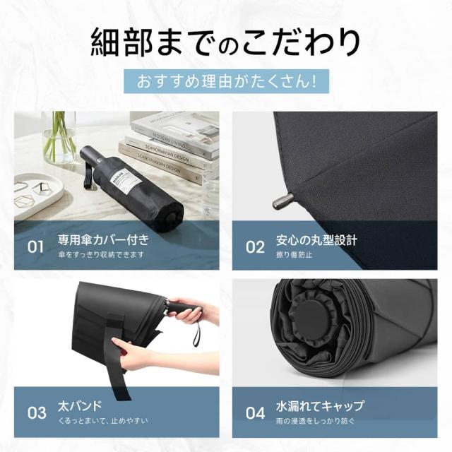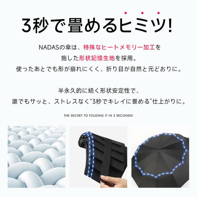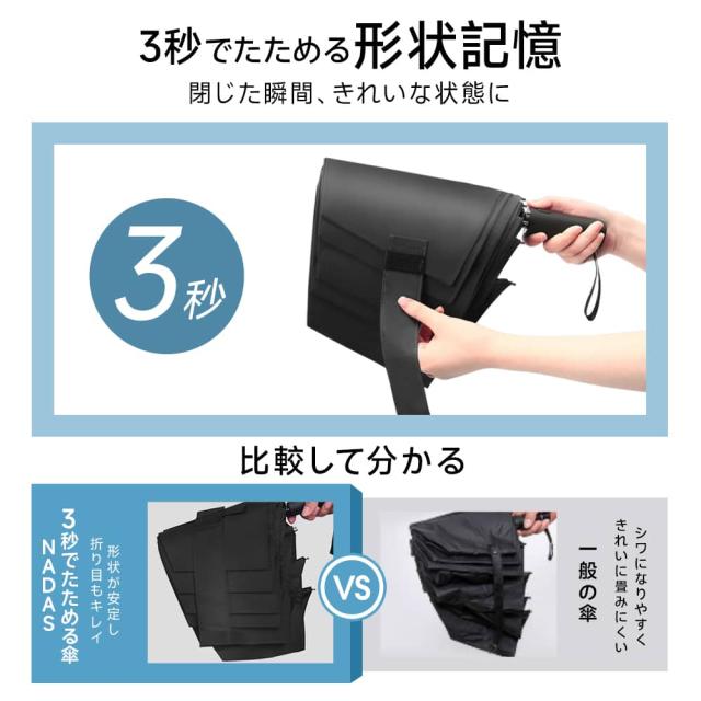 ━━━━━━━━━━━━━━━━━━ ■ 特徴 ━━━━━━━━━━━━━━━━━━ ◎形状記憶加工・約3秒でたためる 閉じた瞬間に傘面が整い、スムーズに折りたたみ可能。 忙しい時でも手間なく美しい収納。