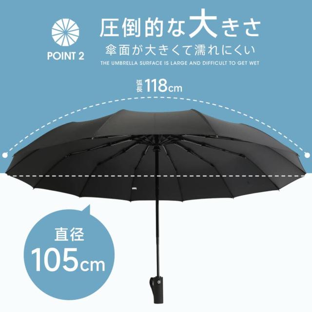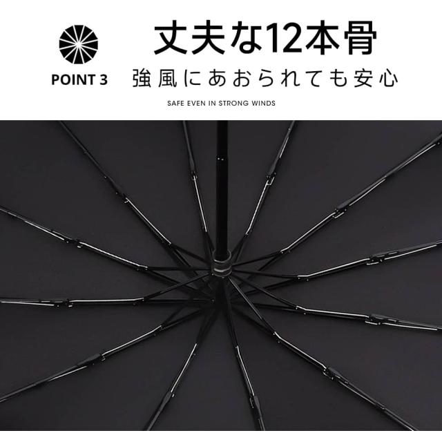 ◎丈夫な12本骨・耐風仕様 強風でもあおられにくく、安定感のある構造。