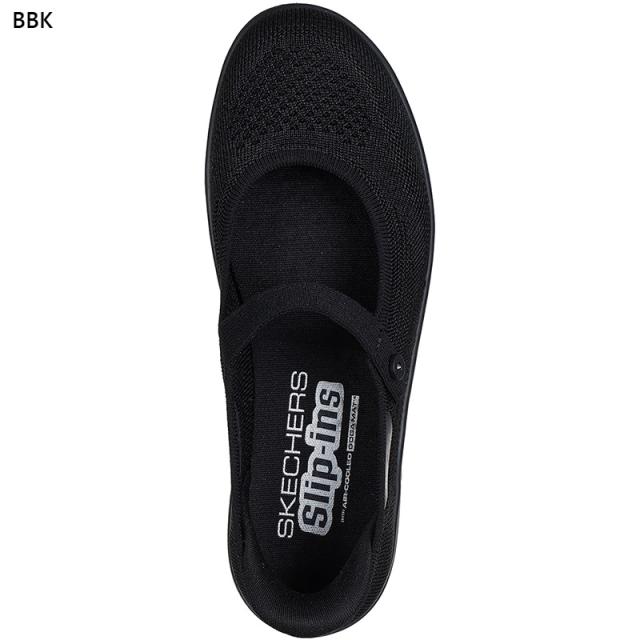 独自のHeel Pillow(TM)(ヒールピロー)デザインを採用したヴィーガン(動物由来成分を含まない)素材のスリップオンメリージェーン。Stretch Fit(TM)(ストレッチフィット)のニットのアッパー、リベット付きインステップストラップ、高反発のSkechers Air-Cooled Goga Mat(TM)(スケッチャーズ エアクールドゴガマット)インソール、軽量でクッション性のあるULTRA GO(TM)(ウルトラゴー)が特長です。