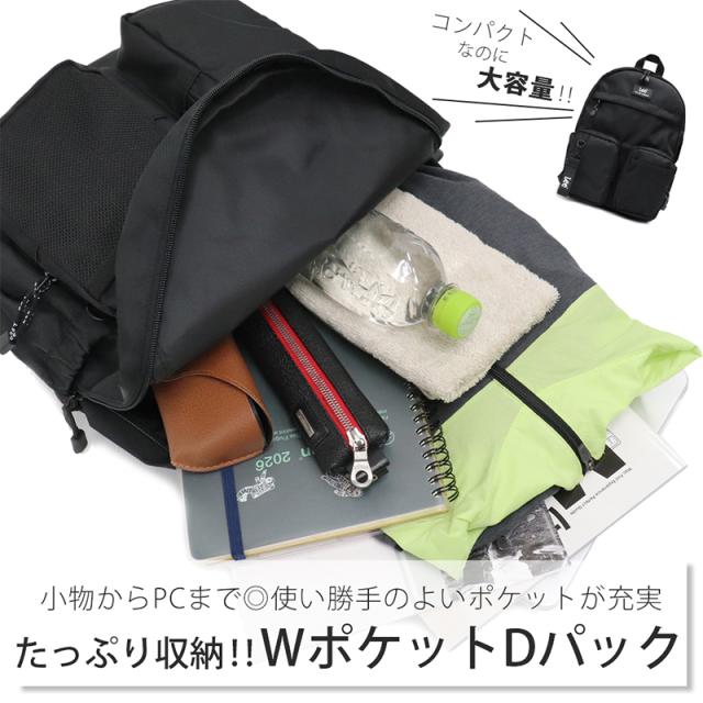 スタンダードデザインで且つダブルポケットでたっぷり収納できるリュックサック です