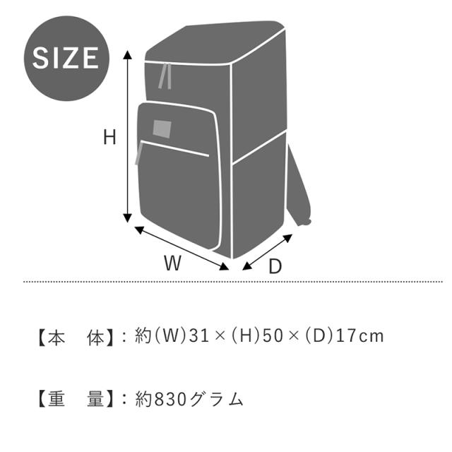 スタンダードなボックス型デザインでたっぷり収納できるリュックサックです