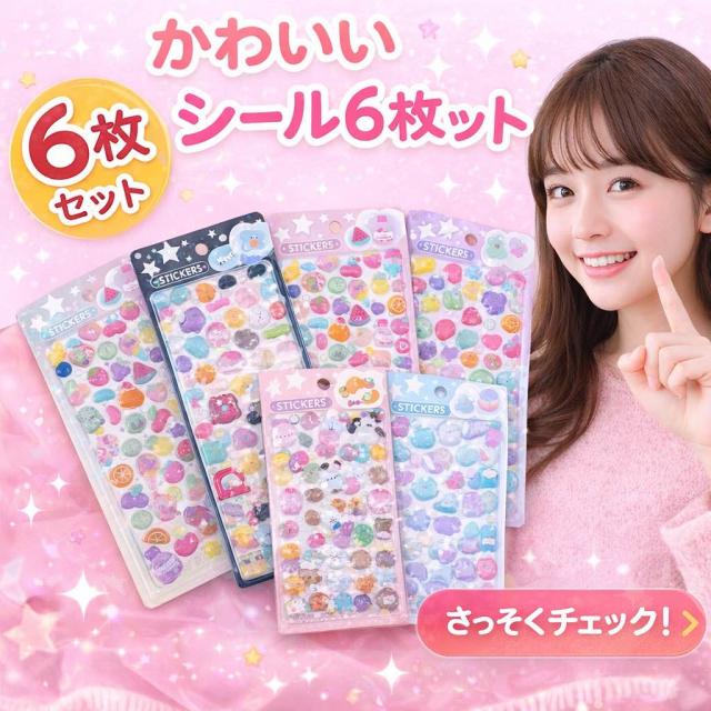 ボンボンシール ドロップシール ぷくぷくシール ウォーターシール 3Dシール ぷっくりシール 6枚セット 熊 うさぎ 可愛い 人気 学生 シール 交換
