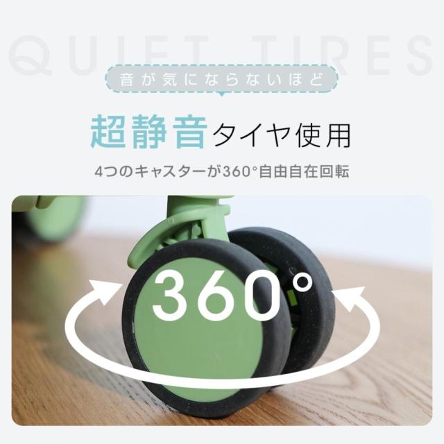 キャリーケースは高弾性で衝撃軽減素材のキャスターを採用します、365度自由回転し、スムーズな滑りを実現できます。さらに、隠れたフックが付き、旅行中の手への負担を軽減します。