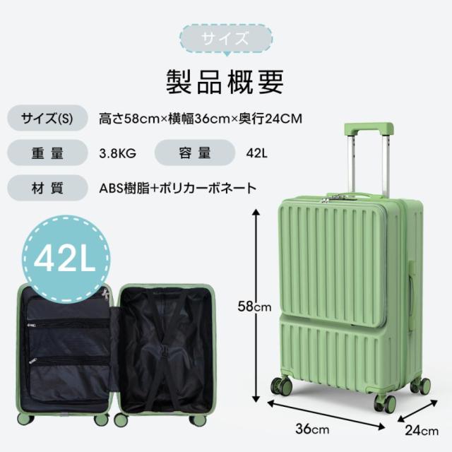 Sサイズ(機内持ち込みOK): 58×36×24cm(重量約3.8kg)、容量約42L(1〜3泊対応)