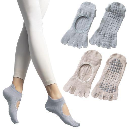 [GOKEI] 現役ピラティス講師監修 ヨガソックス ピラティスソックス 滑り止め 抗菌防臭 グリップソックス 5本指 靴下 ロング 程よい厚み 色あせない ピラティス ヨガ ダンス 滑り止め靴下 保…