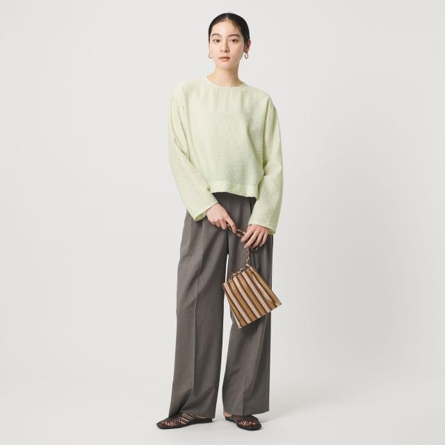 カーブパンツと合わせた、トレンド感のある春らしい装いもおすすめです。