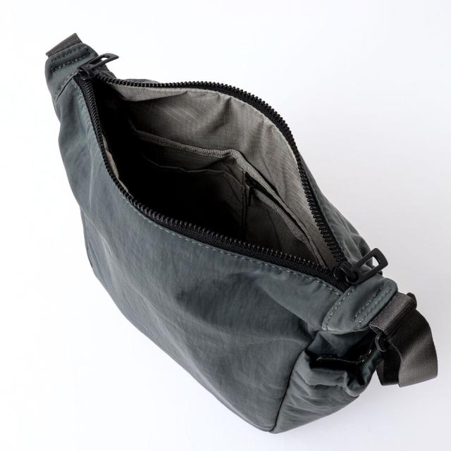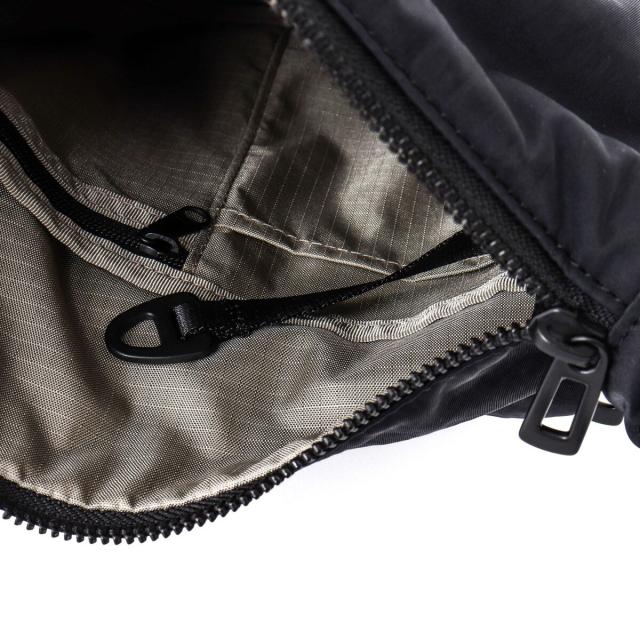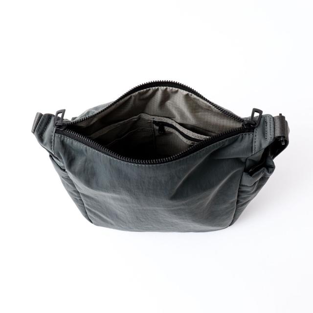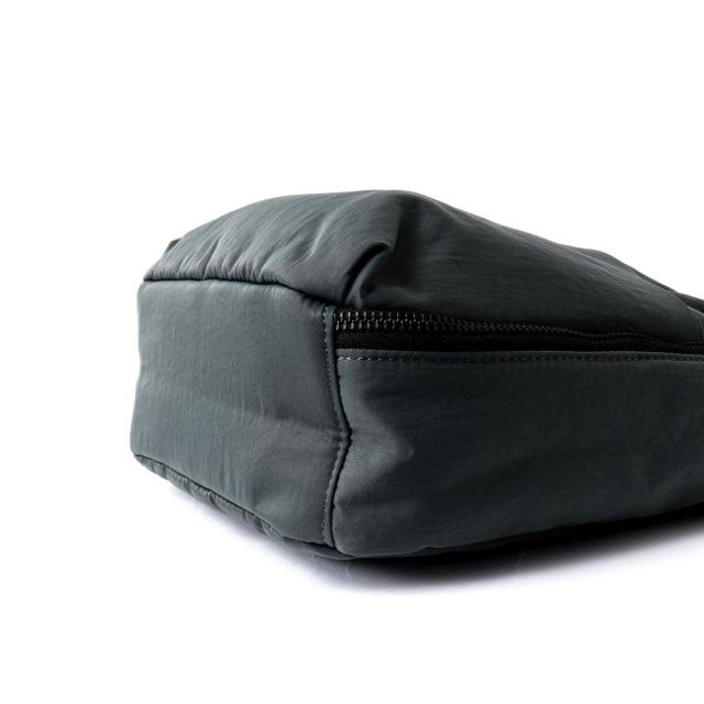 ナイロン特有の軽さと強度を活かしつつ、ツイル織りならではの繊細な光沢としなやかなドレープ性を実現。使い込むほどに味わいを増し、持つ人のスタイルに自然と馴染む、ニュアンスのある素材感が特徴です。