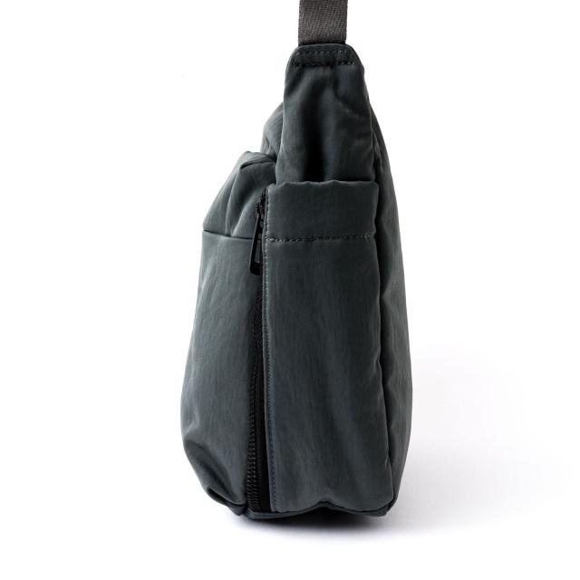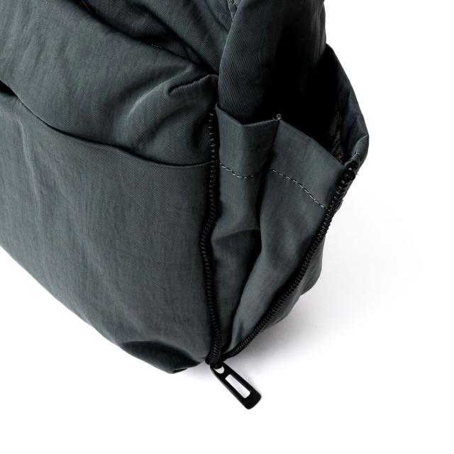 しなやかな質感と機能性が調和するプレミアム素材で、空気をはらんだような柔らかな風合いと自然なシワ感が魅力の上質なナイロンツイルを採用しています。生地に施されたワッシャー加工により、表面にほどよい陰影が生まれ、ラフ過ぎず洗練された印象に仕上がっています。