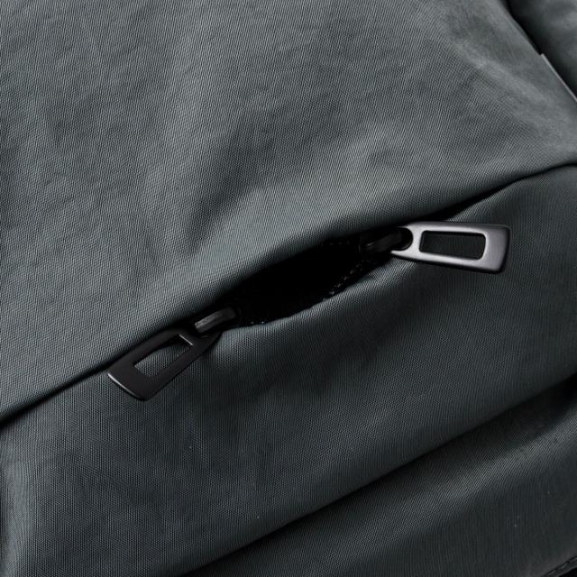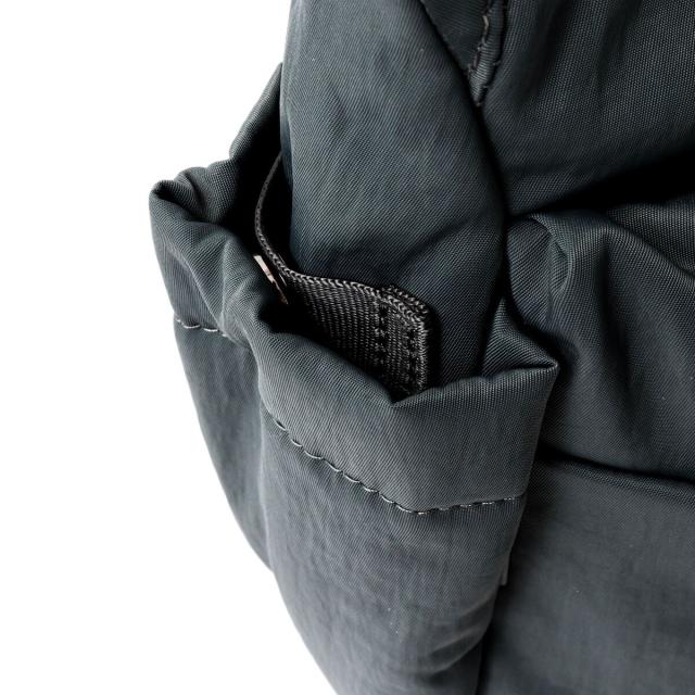 ペットボトルや折りたたみ傘などを立てて収納できるサイズ感で、メイン室以外にもファスナーで開閉できるポケットがフロント側に2つあり、両サイドにもオープンポケットも付いて利便性に優れた仕様。