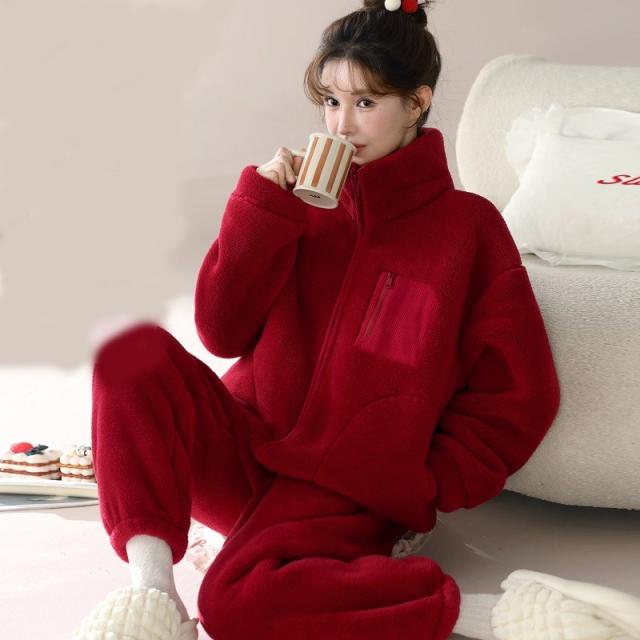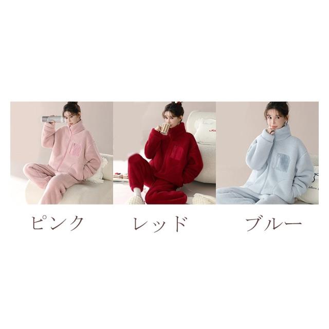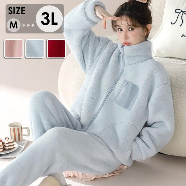 レディース ルームウェア 秋冬 あったか フランネル パジャマ 上下セット 可愛い もこもこ 加厚 大きいサイズ 部屋着 ふわふわ M L 2L 3L ピンク ブルー レッド ns015m7m7x7