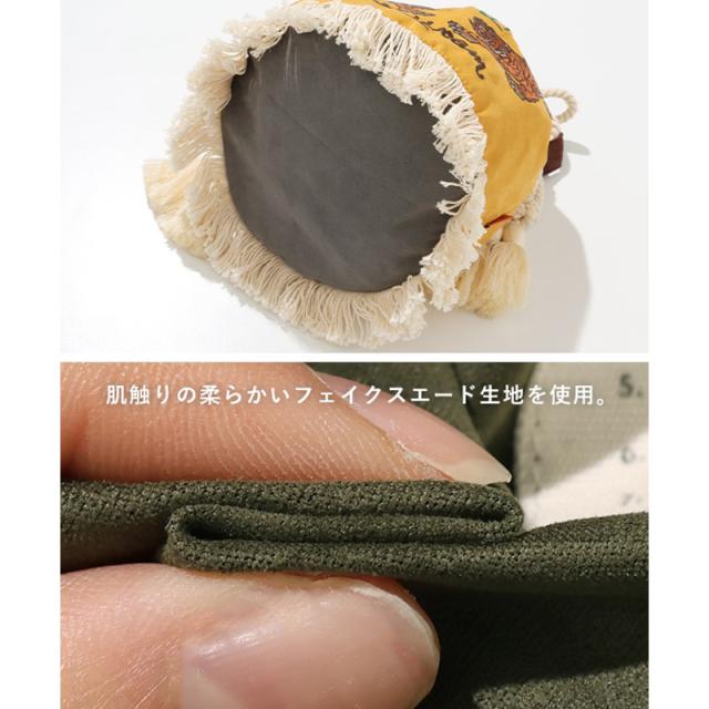 人気のスーベニア巾着をベースに、しなやかなフェイクスエード生地へアップデート。アウトドアやフェス、旅行、タウンユースまで幅広く活躍。