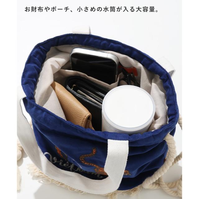 フリンジディテールとタッセル付きロープ紐がアクセントとなり、シンプルな装いにも存在感をプラスするデザインに仕上げています。