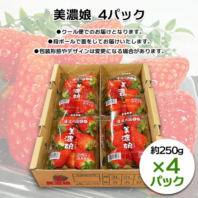 いちご 苺 イチゴ 送料無料 岐阜県産 美濃娘 4パックセット みのむすめ