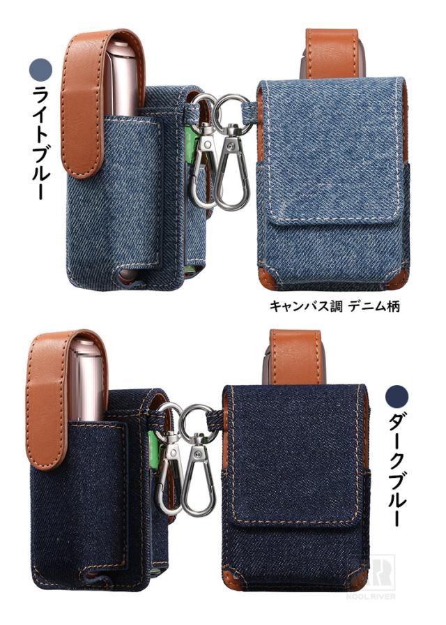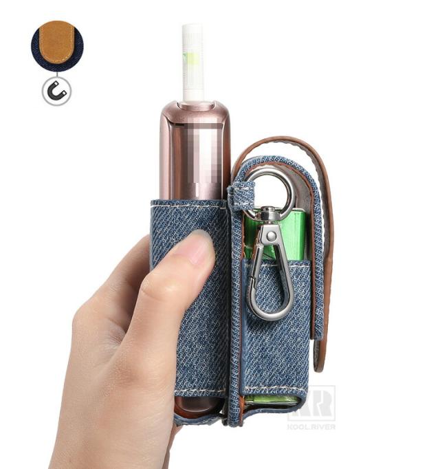 Ploom Aura ケース カバー キャンバス調 デニム調 PUレザー カラビナ付き タバコ収納 収納 電子たばこ 電子タバコ 保護ケース プルーム オーラ 充電対応 持ち運び便利 簡単取り出しケース
