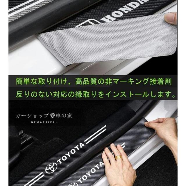 【傷防止】車への乗降り時に靴などが当たる際の衝撃、擦り傷から、スカッフプレートはご愛車のボディやボディの塗装を守ってます。車の乗降り敷居を踏む心配はありません。