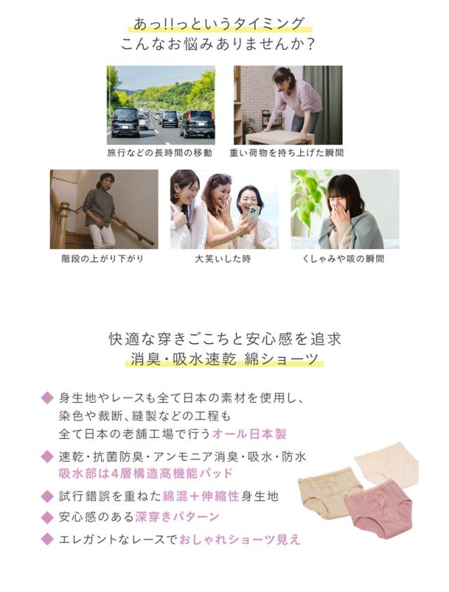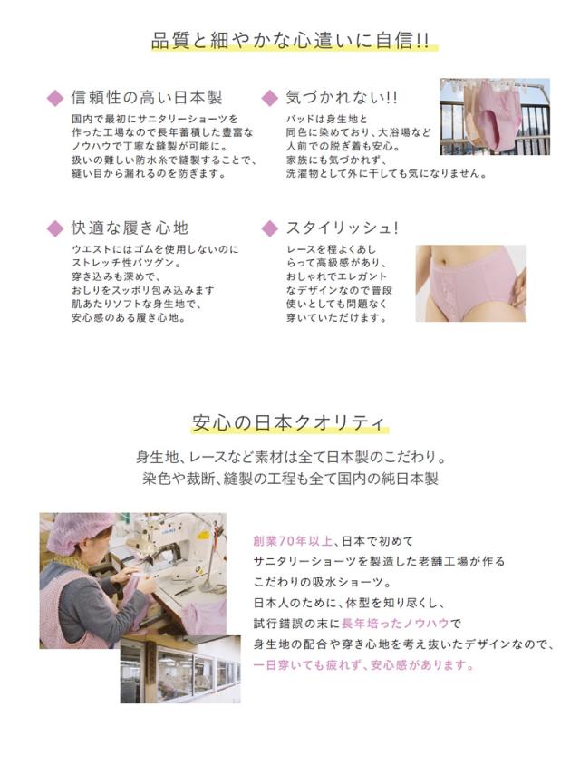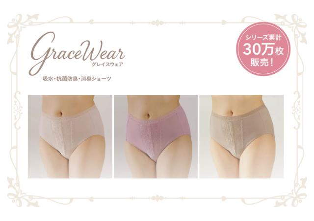 grace wear グレイスウェア 日本製 ショーツ 尿漏れ 尿もれ 女性用 軽失禁 インナー 下着 消臭 吸水 防水 介護 産後 生理 サニタリーショーツ スタイリッシュ 深ばき 旅行 運動 仕事