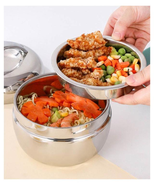 | コンパクトなのに大容量。3サイズ選べる!通勤、通学にぴったり保温弁当箱。 2段タイプなのでご飯容器におかず容器を重ねられるのでかさばらずコンパクトに中容器が大きく、おかずもたくさん入ります。 温かいごはんはもちろん、スープやカレーなどランチの幅が広がる。 真空二重構造なので保温効果が大幅にUP!丼ぶり型2段真空ランチボックス。 本体は絶対に電子レンジで使用しないでください。 | |
