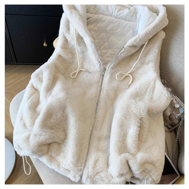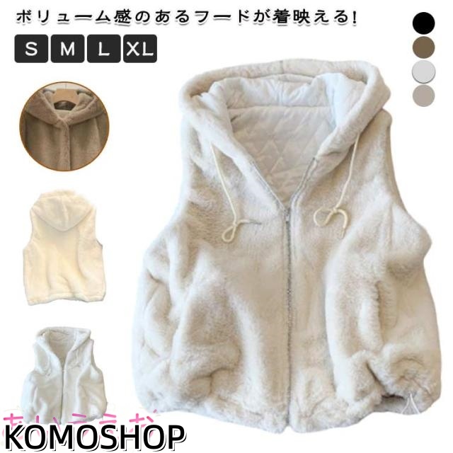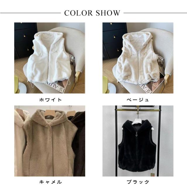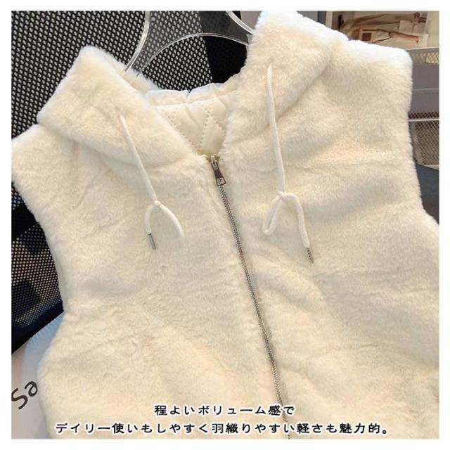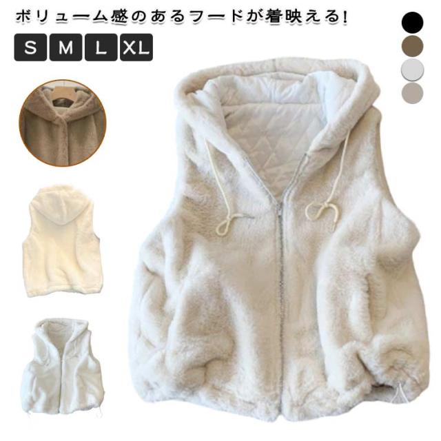 ベスト アウター レディース フェイクファーベスト フード付き フェイクファー ジレ 羽織もの コート ショート 冬 ベスト フード トップス ノースリーブ 無地 オシャレ