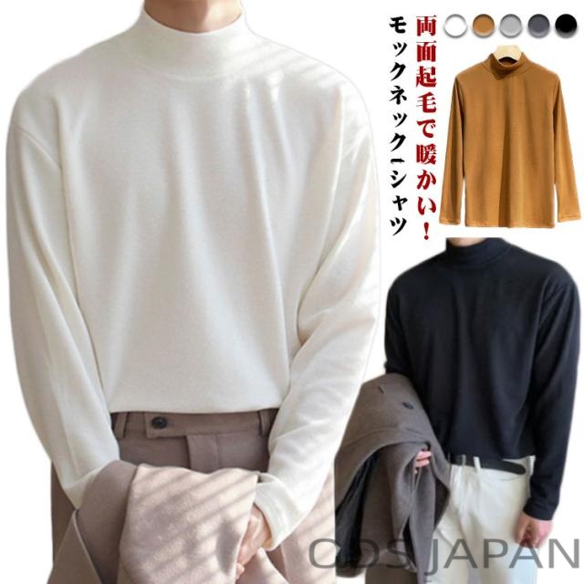 モックネック カットソー メンズ tシャツ 両面起毛 長袖 トップス ハイネック あったか 防寒 保温 極暖 暖かい インナー 無地 シンプル ストレッチ おしゃれ ロンt レイヤード 重ね着 秋服 秋 秋冬 送料無料