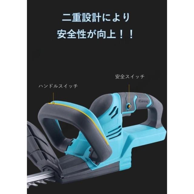 送料無料 充電式ヘッジトリマー チェーンソー 刈込幅490mm 両刃駆動 芝刈り機 生垣バリカン バッテリー2枚 園芸用 庭木バリカン 剪定機械