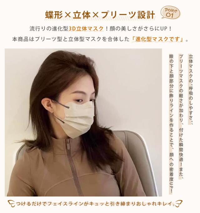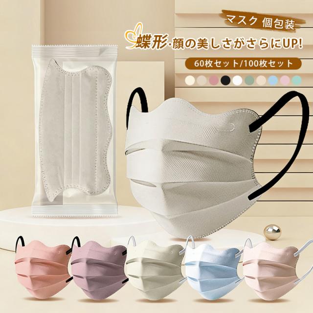 マスク 個包装 3Dマスク 不織布マスク 60枚セット/100枚セット プリーツマスク 立体マスク 蝶型マスク 雲型 花粉対策 マスク 春秋冬に適した 使い捨て 目尻を保護し 顔を小さく見せ