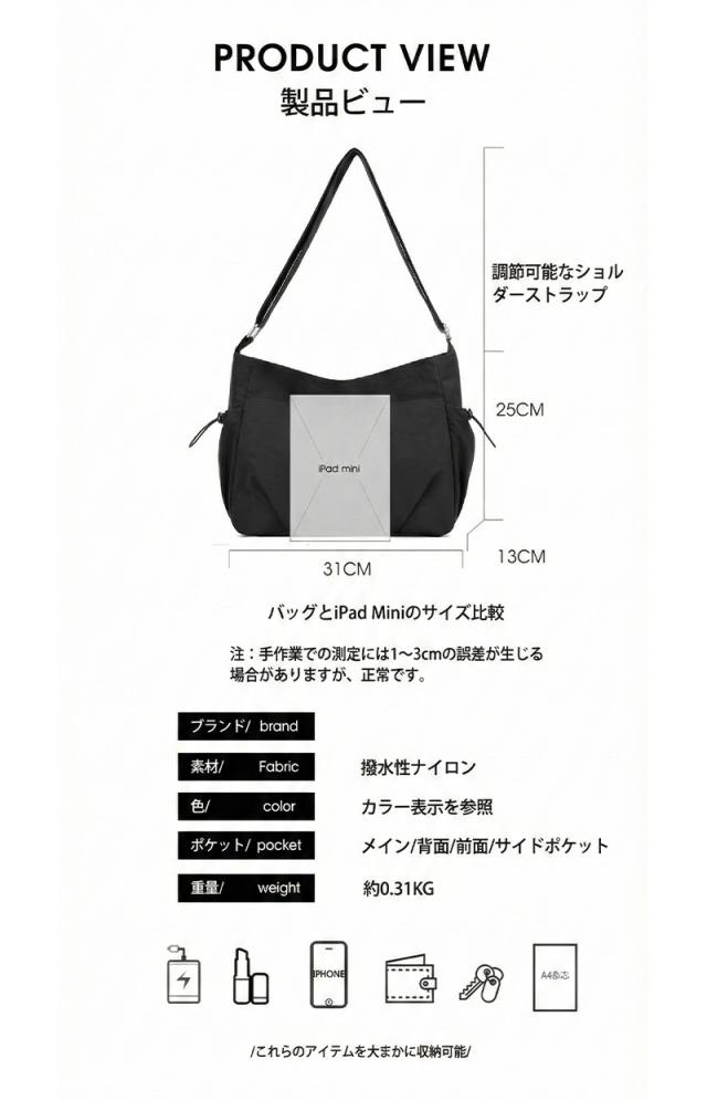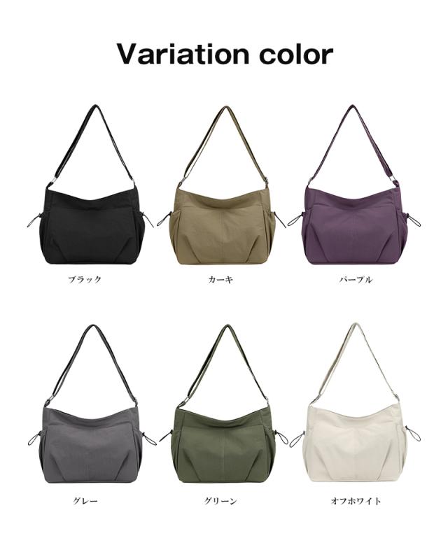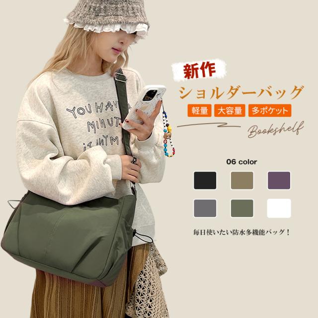 ショルダーバッグ レディース 斜めがけ 無地 ナイロン生地 大容量 トートバッグ 多ポケット 軽量 防水 通勤 日常用 旅行 おしゃれ