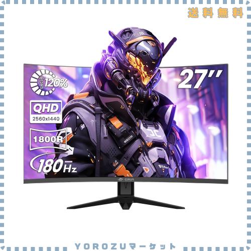 ◆商品名:CRUA ゲーミングモニター 27インチ WQHD 2560x1440 180Hz 湾曲モニター 1800R ディスプレイ HDMI2.0 & DP1.4 ブルーライト軽減 傾斜調整
