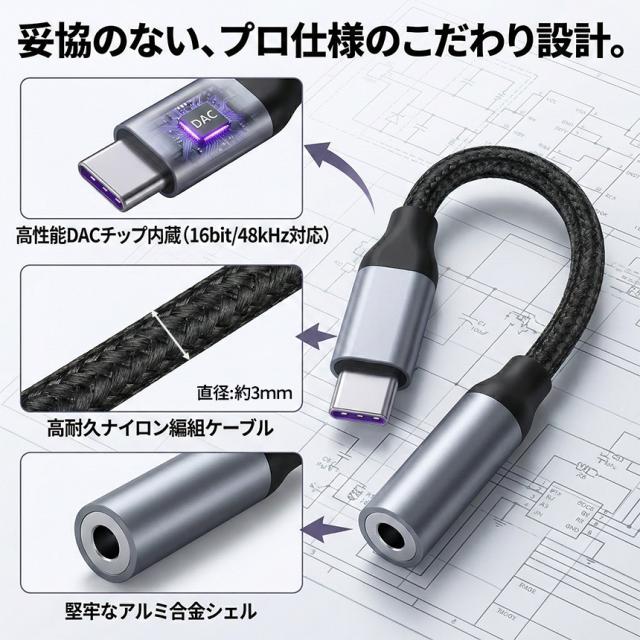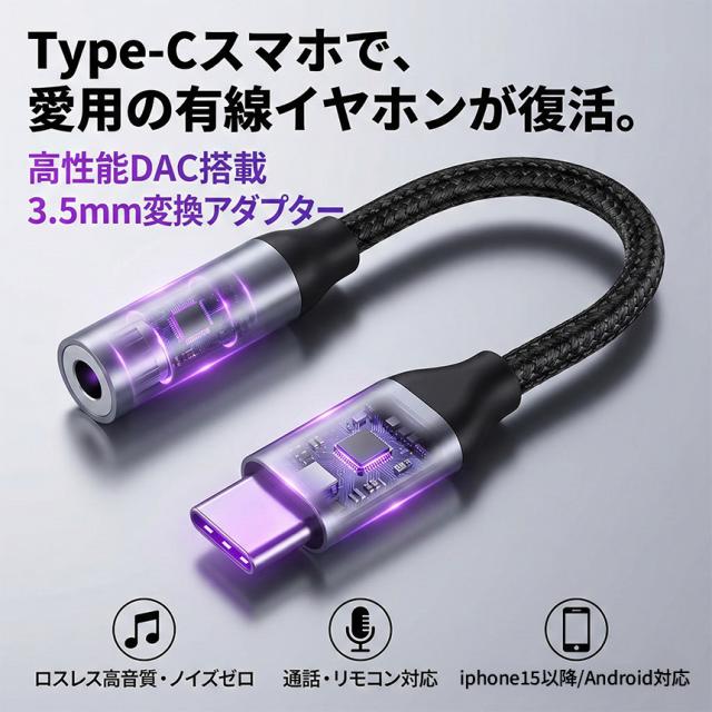 イヤホン変換アダプター USB Type-C to 3.5mm イヤホン変換ケーブル DAC搭載 高音質 愛用の有線イヤホンが復活 ハイレゾ級ロスレスサウンド 通話/マイク/リモコン全対応 iPhone 15 16 17/Galaxy/Pixel/iPad等各種対応 高耐久ナイロン編組ケーブル ヘッドフォン