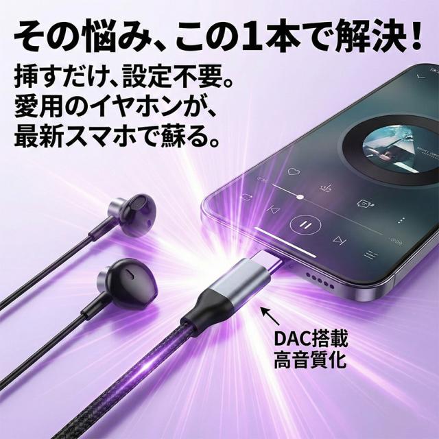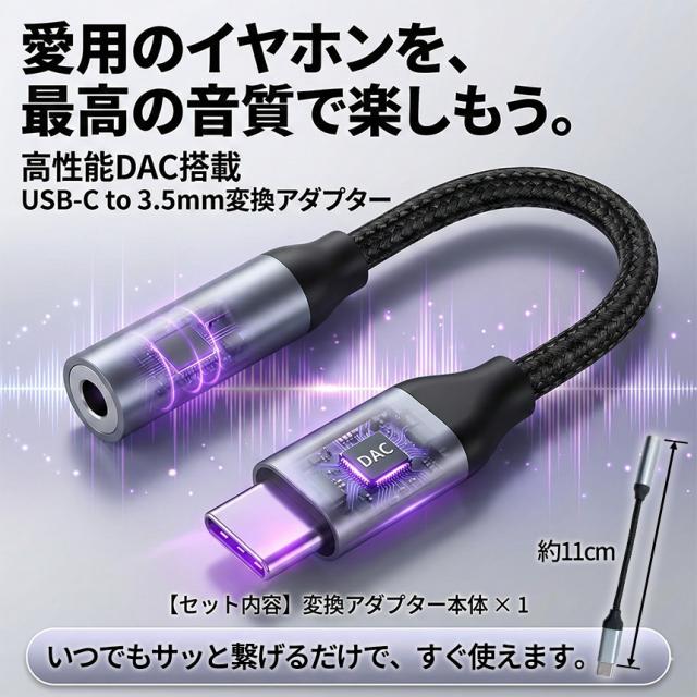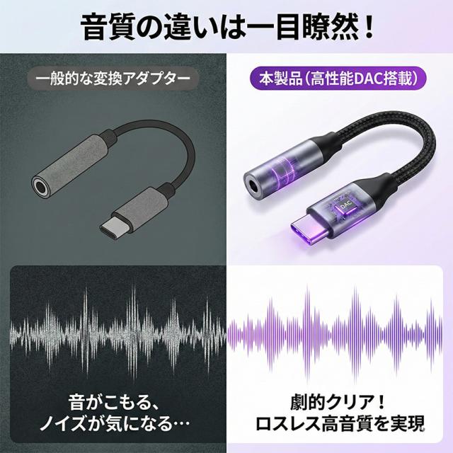 この「DAC搭載・高音質変換アダプター」があれば、その悩みは一瞬で解決します。