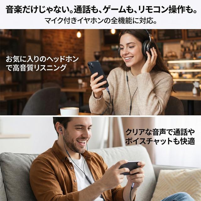音楽鑑賞はもちろん、マイク付きイヤホンでのハンズフリー通話や、ゲーム中のボイスチャットも驚くほどクリアな音声で行えます。