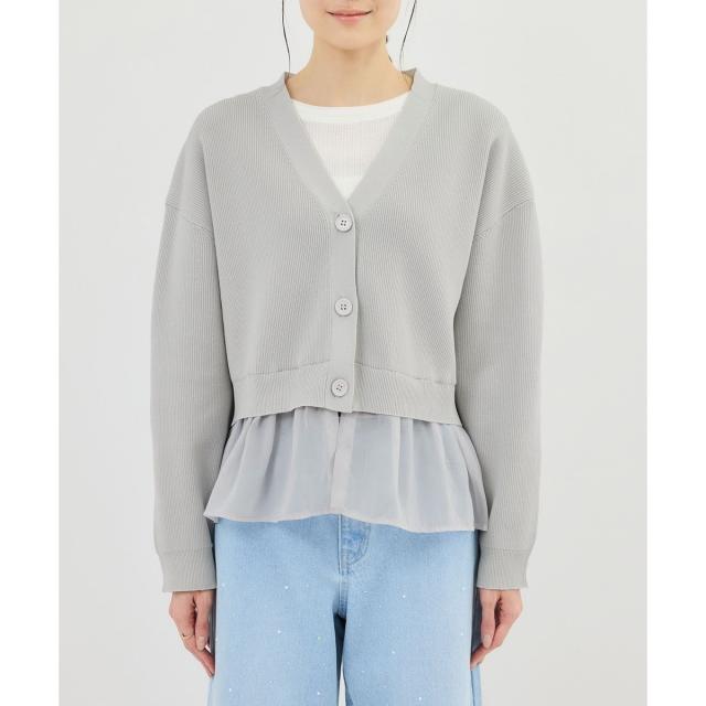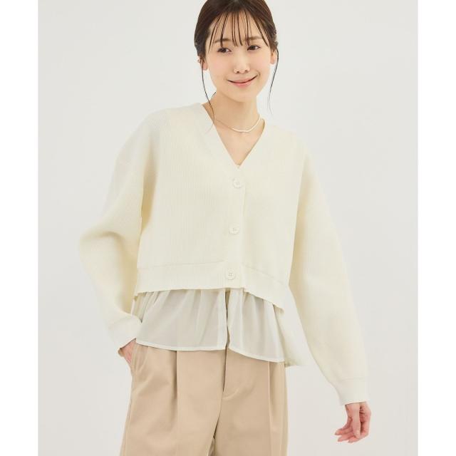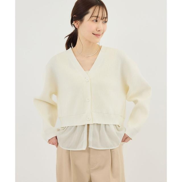 ロペピクニック(ROPE’ PICNIC)/異素材ドッキングニットカーディガン/イージーケア