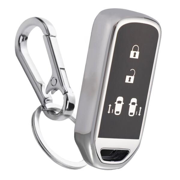 (FRACTAL CREATION) キーケース キーカバー ホンダ NBOX カスタム N-BOX+ Nワゴン N-WGN JG1/2 カスタム N-ONE N-BOX JH1 JH2 JH3 スラッシュ N-VAN JJ1 JJ2 対応 カラビナフック付き エヌボックス (シルバー)
