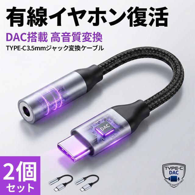2個セット イヤホン変換アダプター USB Type-C to 3.5mm イヤホン変換ケーブル DAC搭載 愛用の有線イヤホンが復活 ハイレゾ級ロスレスサウンド 通話/マイク/リモコン全対応 iPhone 15 16 17/Galaxy/Pixel/iPad等各種対応 高耐久ナイロン編組ケーブル