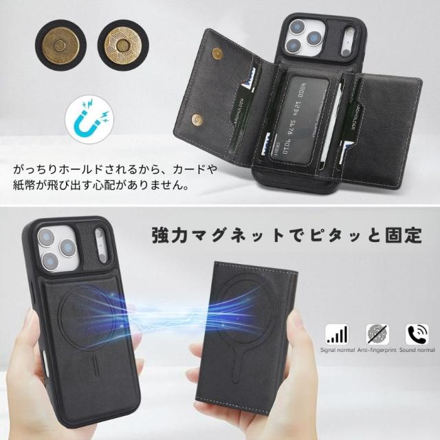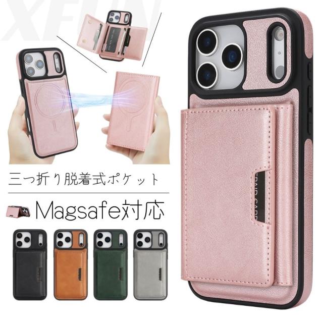 iPhoneケース マグネット 2in1 三つ折り ポケット iPhone 17 ケース iPhone16 ケース iPhone 15 ケース iPhone14 ケース iPhone13ケース iPhone 12 ケース iphone17pro ケース magsafe カード収納 カードケース 取外し スマホケース XFUN