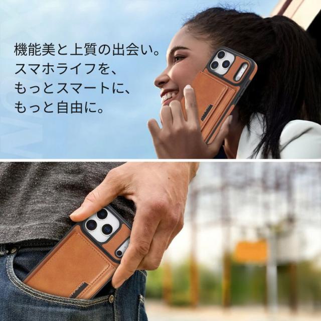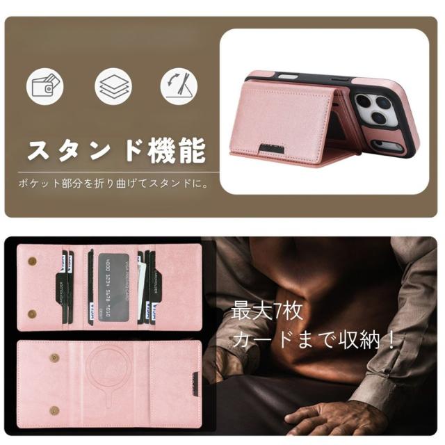 【マグネットでカバーにくっつく】 強力マグネットでポケットがケースにピタッと固定。がっちりホールドされるから、カードや紙幣が飛び出す心配がありません。