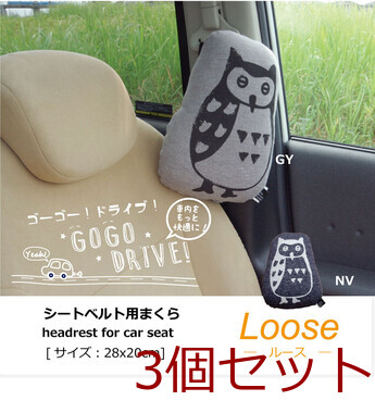 カークッション 枕 まくら マクラ フクロウ ルース シートベルト枕 約28×20cm 3個セット 送料無料