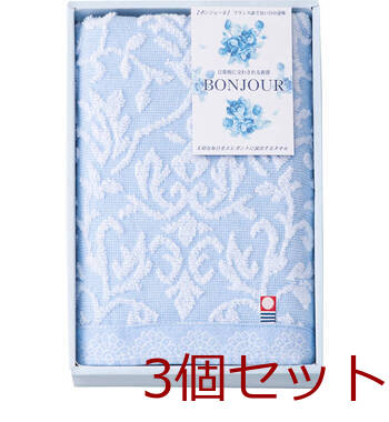 今治タオル ボンジュール ウォッシュタオル1P BJ 1810 ブルー 3個セット 送料無料