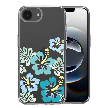 iPhone16e ケース クリア ハイビスカス ブルー スマホケース 側面ソフト 背面ハード ハイブリッド 送料無料