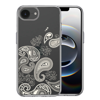 iPhone16e ケース クリア ペイズリー 柄 グレイ