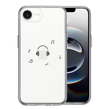 iPhone8 ケース クリア 音楽 music ヘッドフォン ヘッドホン グレー スマホケース 側面ソフト 背面ハード ハイブリッド