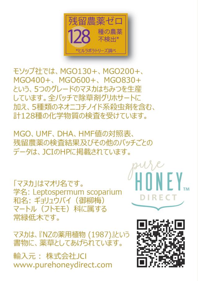 モソップ マヌカハニーMGO830+(UMF20+)